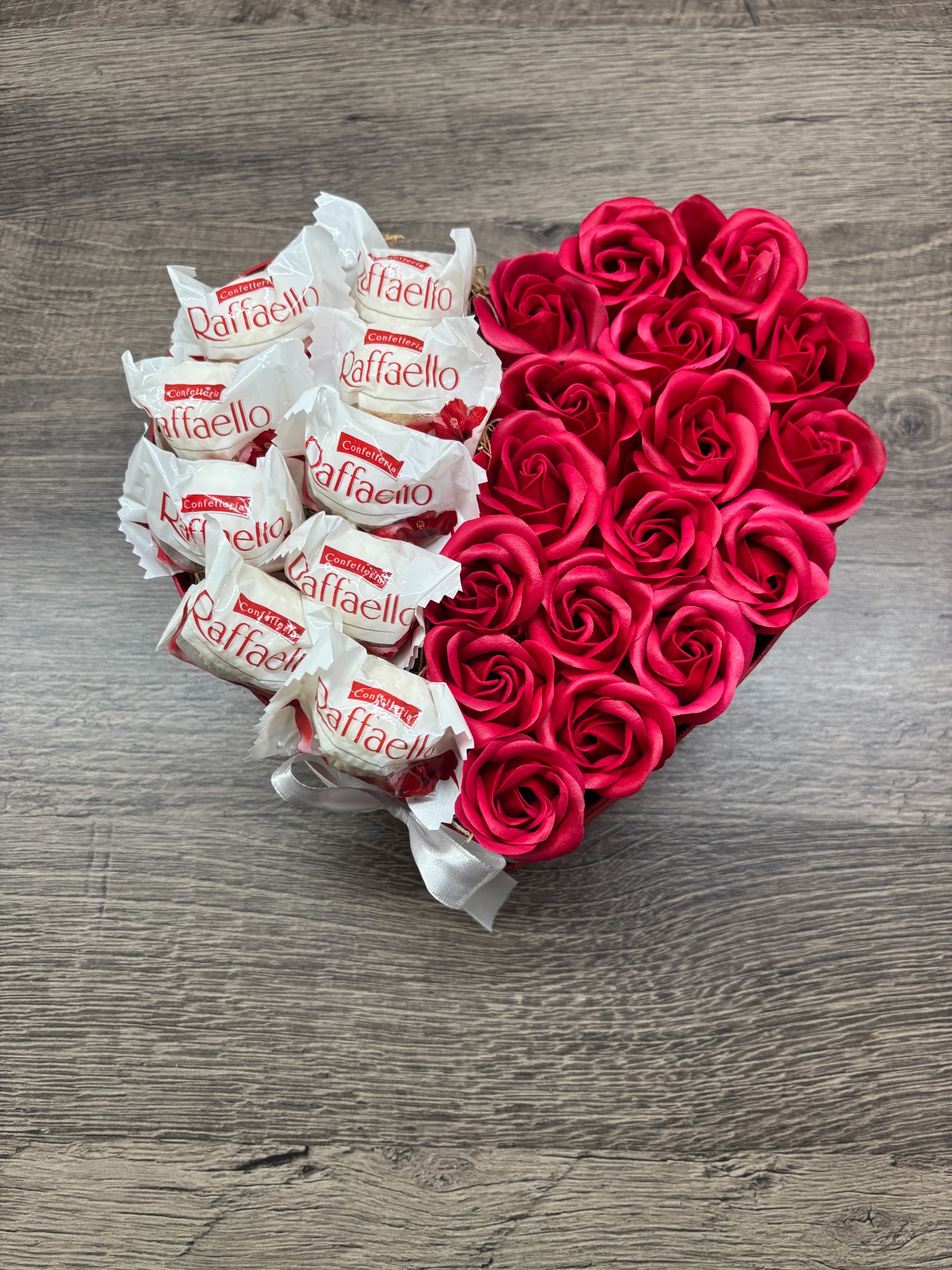 Képzeld el a szerelmed meglepett mosolyát, amikor kibontja ezt a gyönyörű szív alakú piros dobozt: tele telt rózsaszín rózsákkal, amelyek sosem hervadnak el, és finom fehér csokoládékkal, amik édes kiegészítést adnak a romantikához. A kecses fehér szalag köti össze az egészet, miközben a natúr fa felületen úgy néz ki, mintha egy szerelmi történetből lépett volna elő – ideális a nappali asztalára, hálószobába vagy ajándékként születésnapra, évfordulóra vagy csak úgy, mert szereted.